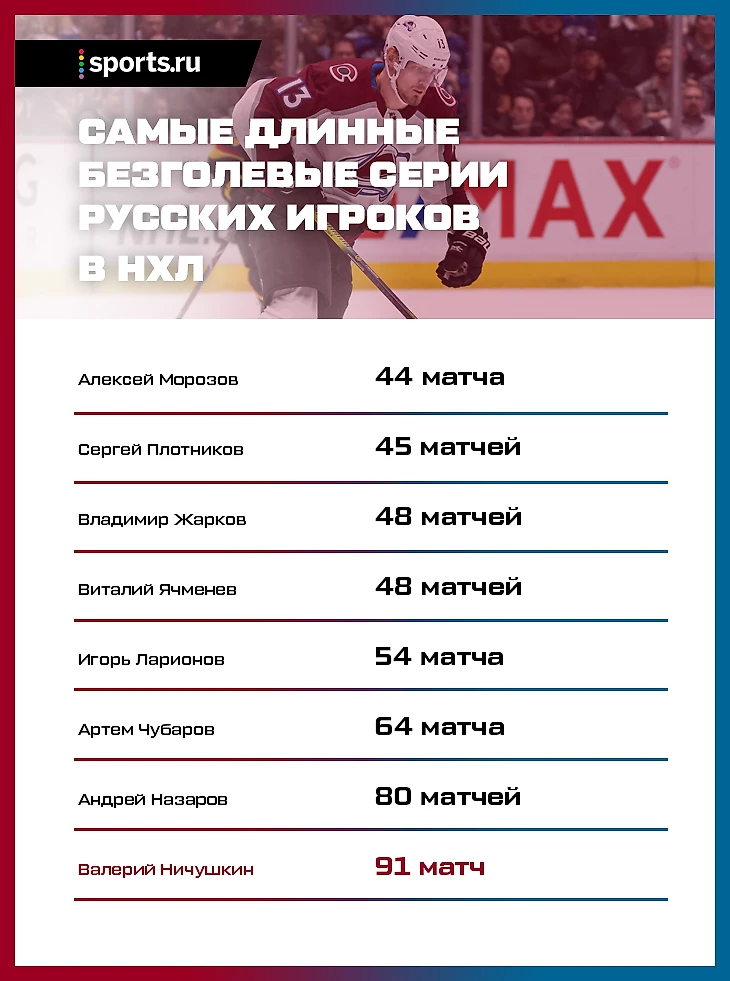 Он не забивал больше сезона – на пути к этому голу Ничушкин обогнал даже Андрея Назарова, который не забивал на протяжении 80 матчей.  А ведь тот был тафгаем и никогда не считался самым талантливым юниором страны.