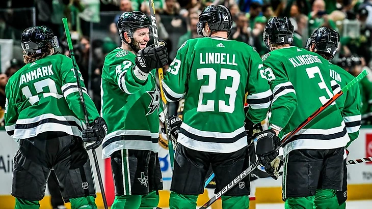 "Даллас Старз"-"Вегас Голден Найтс" 4:2.Александр Радулов набрал 3 очка (2+1),Йон Клингберг отдал 3 результативные передачи,Тайлер Сегин отдал 2 результативные передачи,Бен Бишоп отразил 26 бросков."Звёзды" выиграли 7 матч подряд.