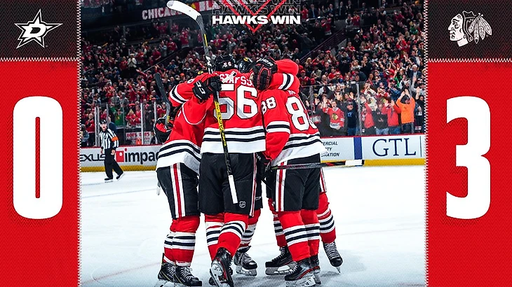 "Чикаго Блэк Хоукс"-"Даллас Старз" 3:0.Брэндон Саад с Патриком Кейном и Коннором Мёрфи забросили по шайбе,Кори Кроуфорд отразил 32 броска и сыграл первый сухой матч в сезоне."Чёрные ястребы" взяли реванш за гостевое поражение.