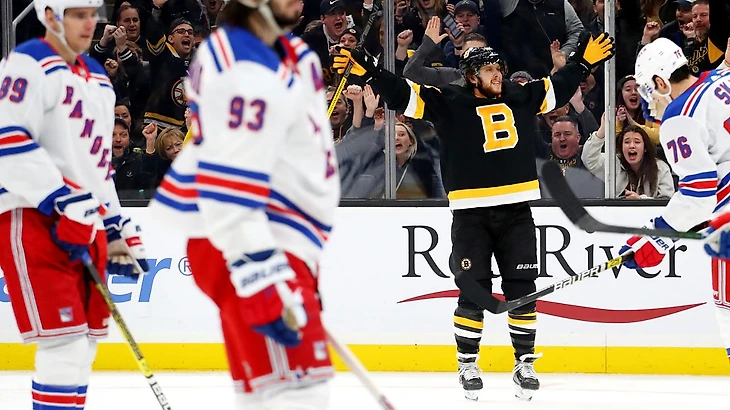 "Бостон Брюинз"-"Нью-Йорк Рейнджерс" 3:2 (ОТ).Давид Крейчи в овертайме принёс победу хозяевам.Давид Крейчи и Давид Пастрнак набрали по 2 очка (1+1),Джейк Дебрюск отдал 2 результативные передачи,Ярослав Халак отразил 26 бросков.У гостей Павел Бучневич забросил одну шайбу,Артемий Панарин отдал результативную передачу.Во втором периоде Чарли МакЭвой подрался с Бренданом Смитом.
