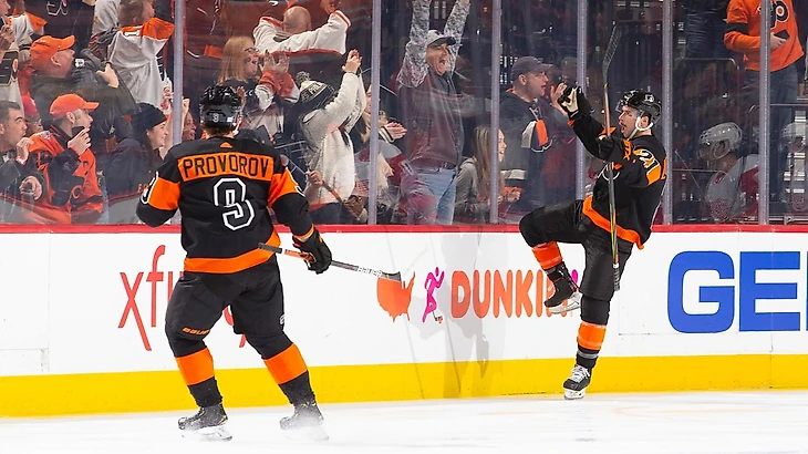"Филадельфия Флайерс"-"Детройт Ред Уингз" 6:1.Якуб Ворачек отдал 3 результативные передачи,Шон Кутюрье и Скотт Лоутон набрали по 2 очка (1+1),Мэтт Нисканен отдал 2 результативные передачи,Иван Проворов отдал результативную передачу,Картер Харт отразил 32 броска."Лётчики" выиграли 3 матч подряд.