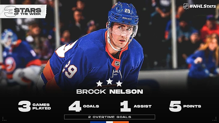 Третья звезда - Брок Нельсон, "Айлендерс" - 3 игры, 4+1, "+3"
