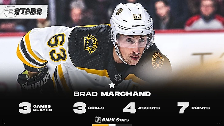 Первая звезда - Брэд Маршанд, "Бостон" - 3 игры, 3+4, "+6"