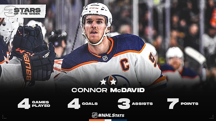 Вторая звезда - Коннор МакДэвид, "Эдмонтон" - 4 игры, 4+3, "0"