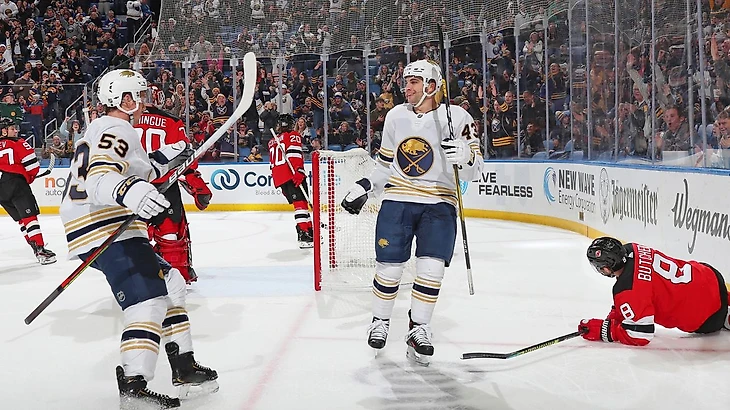 "Буффало Сэйбрз"-"Нью-Джерси Дэвилз" 7:1.Джек Айкел набрал 3 очка (1+2),Юхан Ларссон отдал 3 результативные передачи,Конор Шири забросил 2 шайбы,Джефф Скиннер и Виктор Олофссон набрали по 2 очка (1+1),Линус Уллмарк отразил 44 броска.У гостей Никита Гусев отдал результативную передачу.