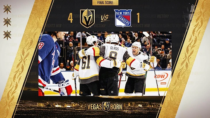 "Нью-Йорк Рейнджерс"-"Вегас Голден Найтс" 1:4.Алекс Тач забросил 2 шайбы,Малкольм Суббан отразил 29 бросков.