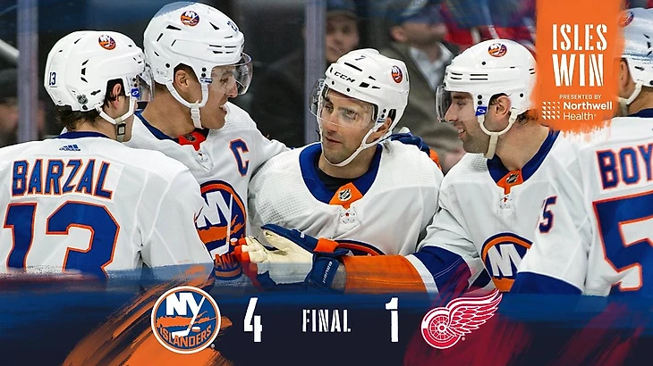 "Детройт Ред Уингз"-"Нью-Йорк Айлендерс" 1:4.Райан Пулок отдал 3 результативные передачи,Джордан Эберле забросил 2 шайбы,Андерс Ли набрал 2 очка (1+1),Семён Варламов отразил 30 бросков.