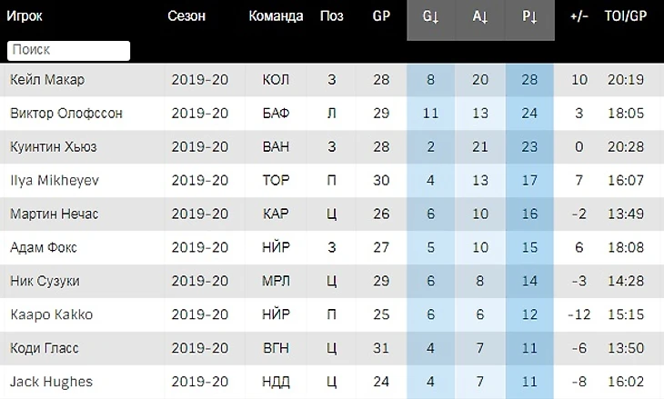 Среди тех игроков, кто еще удивил в последнее время и ворвался в 10-у лучших, также следует отметить защитника «Рейнджерс» Адама Фокса и центрфорварда «Монреаль Кэнэдиенз» Ника Сузуки. Среди тех, кто пока немного сдал, но остается стабильно в десятке можно выделить Илью Михеев, Мартина Нечаса и Коди Гласса. Они по прежнему на виду в своих клубах, но очки набирают не так успешно. Ожидаемо выпали из топ-10 списка - Тревор Мур из "Торонто", Сэм Лафферти из "Питтсбурга" и Александер Нюландер из "Чикаго". Что касается первого и второго номеров драфта НХЛ-2019 – Джека Хьюза и Каапо Какко, то они по прежнему в поиске своей игры в НХЛ. Хотя уже оба в топ-10 бомбардиров. Они медленно но уверенно прогрессируют, как мне кажется.