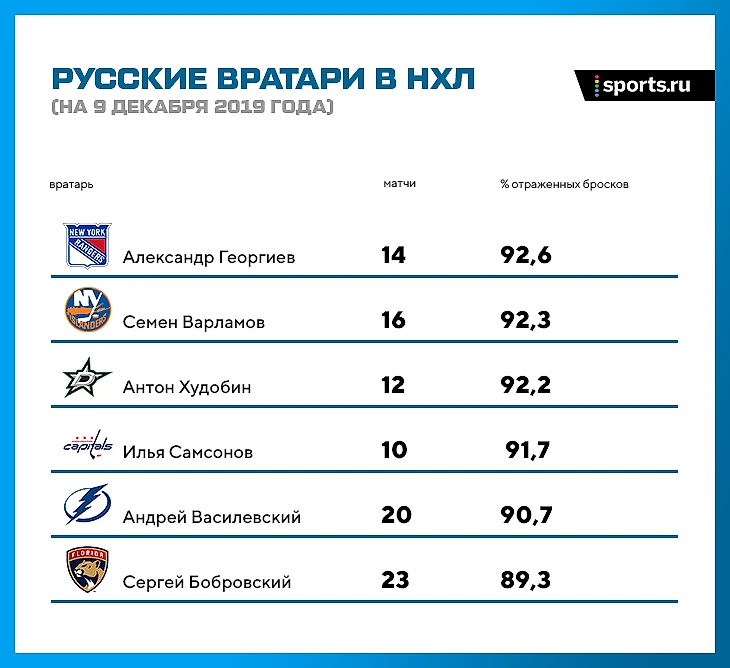 Это уже второй «сухарь» Георгиева в сезоне – первый был в конце ноября с «Нью-Джерси» – и он вывел Александра на первое место по проценту отбитых бросков среди русских вратарей в НХЛ. Он не получит за это достижение награды, потому что, кроме всего прочего, находится всего на 12-м месте среди всех вратарей, но в моменте обходит и Василевского, и Бобровского, и Варламова с Худобиным.