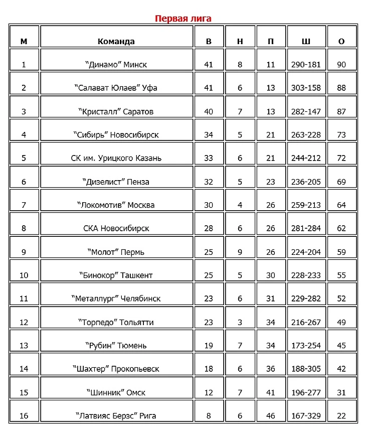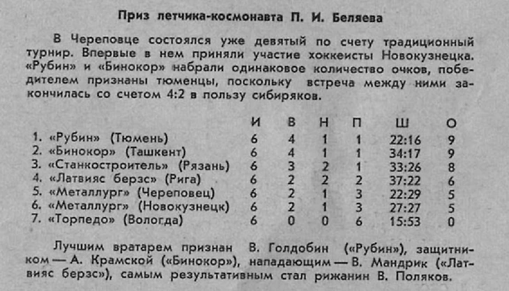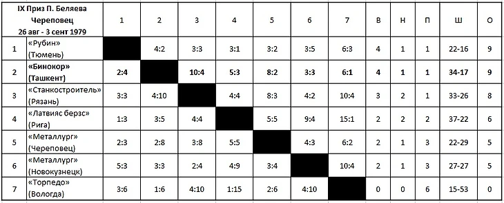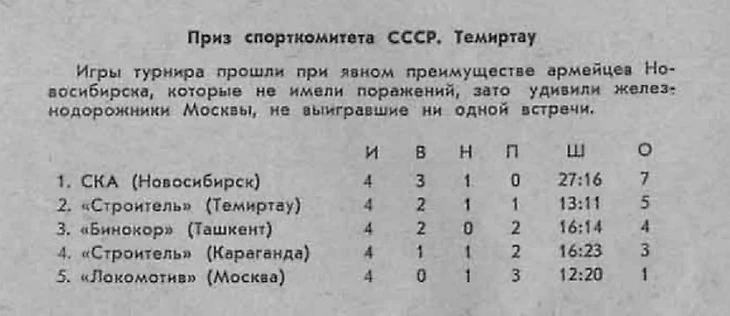Таблица турнира в Темиртау на Приз Спорткомитета СССР