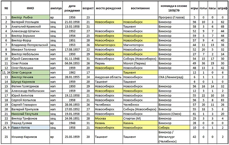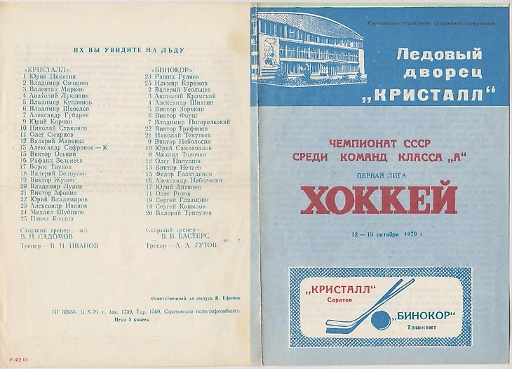 «Стартовала ташкентская команда нынче не особенно удачно и после 16 туров, имея в активе всего 11 очков, занимала 12 место.» (из программки уфимского Дворца спорта к матчам 17 и 18 ноября 1979 года между «Салаватом Юлаевым» и «Бинокором»).