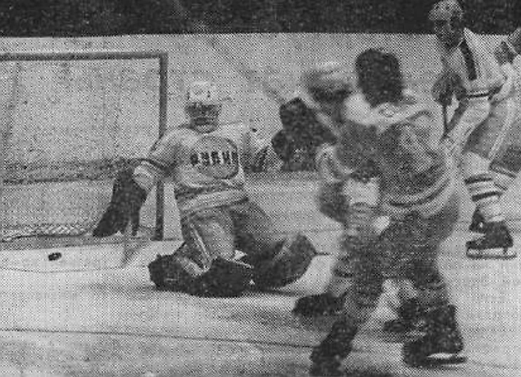 1982/83. Виктор Нечаев в выездном матче «Нью-Хэвен Найтхокс» (Американская хоккейная лига), фарм-клубе «Лос-Анджелес Кингз»