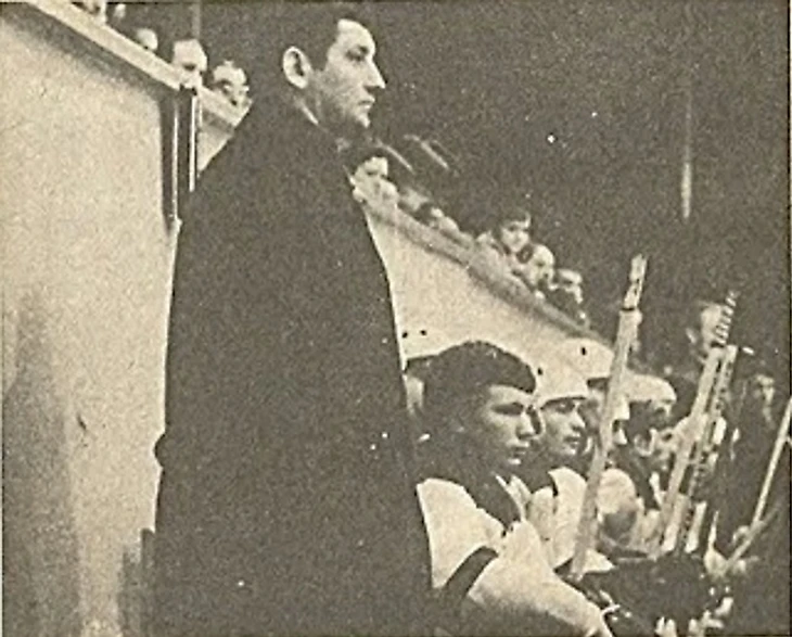 Начало 70-х годов. «Мотор» (Барнаул). Администратор Любомир Неделько, вратарь Владимир Риб (снимок из книги В. Лямкина «Синий лед», Барнаул, 1993)