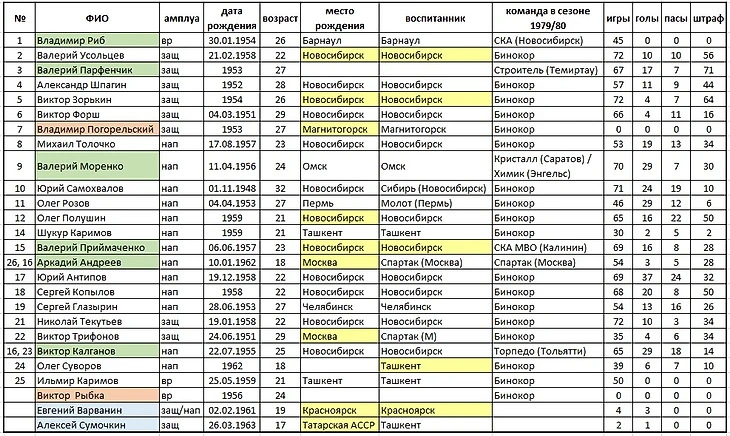 Десятый сезон «Бинокора» из Ташкента (1980/81) - третий игрок для высшей лиги