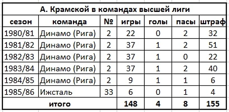 Статистика А. Крамского в высшей лиге