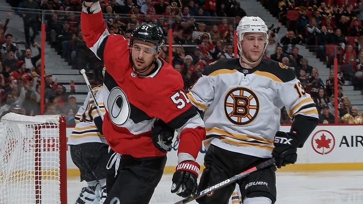 "Оттава Сенаторз"-"Бостон Брюинз" 5:2.Антуан Дюклер набрал 3 очка (2+1),Крис Тирни также набрал 3 очка (1+2),Владислав Наместников и Дилан Демело отдали по 2 результативные передачи,Артём Анисимов забросил одну шайбу,Андерс Нильссон отразил 38 бросков.У гостей Брэд Маршан и Давид Пастрнак отдали по 2 результативные передачи.