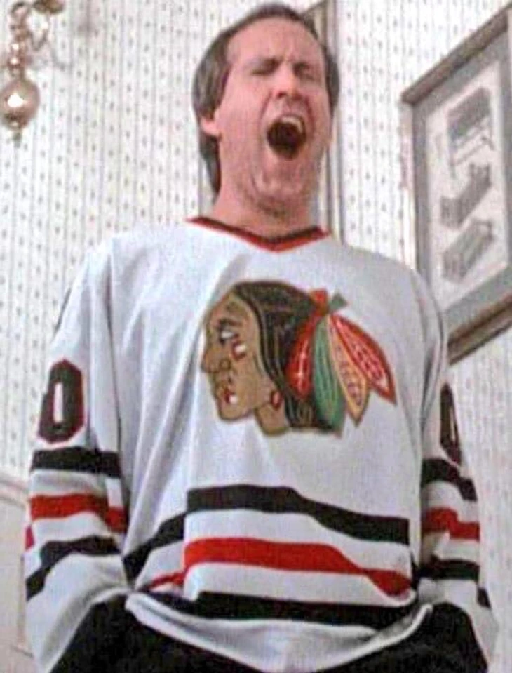 «Рождественские каникулы» Легендарная комедия 1989 года с Чеви Чейзом в главных ролях. Этот фильм стоит обязательно посмотреть, сейчас он как раз в тему, особенно если у вас за окном идет дождь и никакого снега, как и новогоднего настроения. Это кино поможет вам настроится на предстоящие праздники. По сюжету, действие фильма проходит в Чикаго, наверняка, поэтому главный герой Кларк Гризволд и вся его семья болеет за «Чикаго Блэкхоукс». Кстати, джерси с номером 00 и фамилией Griswold стала очень популярна, ее покупали так же, как и джерси лучших игроков «Чикаго» тех лет.