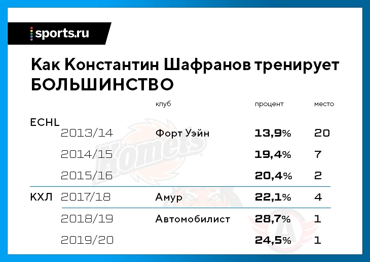 – У вас в штабе работает Константин Шафранов – лучший ассистент лиги по большинству, но до КХЛ он работал только в ECHL (лига третьего уровня в Северной Америке). Как вы вообще открыли его?