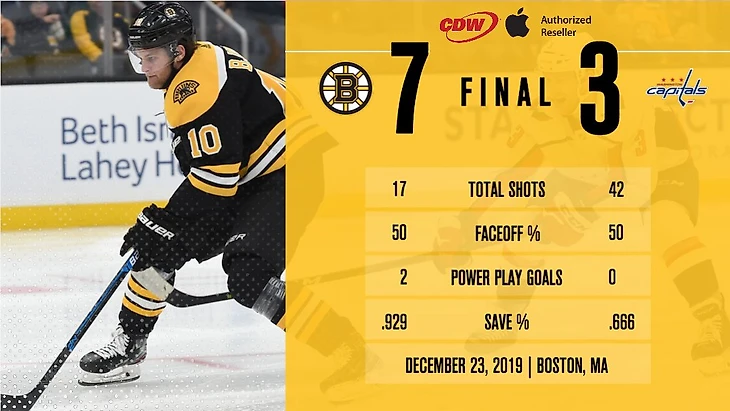 P.S. Первая версия с подробным разбором канула в лета,из-за зависшей вкладки. Поэтому новая версия будет значительно короче и почти полностью посвящена статистике. Приветствую любителей хоккея! 24 декабря,вторник. 12 матчей в НХЛ,самая интересная вывеска ждала нас на TD Garden в Бостоне,где местные мишки ждали гостей из Вашингтона. Команды занимают 1 и 2 место на Востоке,и матч должен был показать,насколько сильны амбиции Вашингтона на Президентский кубок и кубок Стэнли.Игра удалась на славу,10 шайб,драка,стычки,40 минут штрафа и 59 хитов на двоих. Страсти в Бостоне бурлили через край. Статистика матча может сбить с толку,Бостон забил 7 шайб с 17 бросков,и все они были по делу. Бостон доминировал большую часть игры,и по праву забирает 2 очка в копилку. Очень сильный матч провели лидеры Бостона,1+2 у Крейчи,по 2 очка в активах Маршана,Койла,Бержерона,Пастрняка. Очень сильный матч выдал Туука Раск,чего не сказать о его визави из Вашингтона:У Холтби 7/11У Самсонова 3/4 Овечкин и Кузнецов схлопотали по "-3" полезности,Дмитрий Орлов отделался малой кровью-"-1". Бостон за счёт этой победы выходит на 2 место в сводной таблице НХЛ,и упрочил лидерство в Атлантическом дивизионе. Брэд Маршан и Давид Пастрняк набрав по 2 очка ещё более укрепляют свои позиции,в топ-5 бомбардирах сезона. Бостон в очередной раз показал,что команда при удачном настрое,может смять любого соперника,до плей-офф ещё далеко,но точно можно сказать,что команда Брюса Кэссиди там будет,и может очень громко пошуметь. На этом всё,здесь могло бы быть интересное и больше чтиво,но я всего-лишь хотел вставить видео из твиттера и "Шеф,всё пропало".