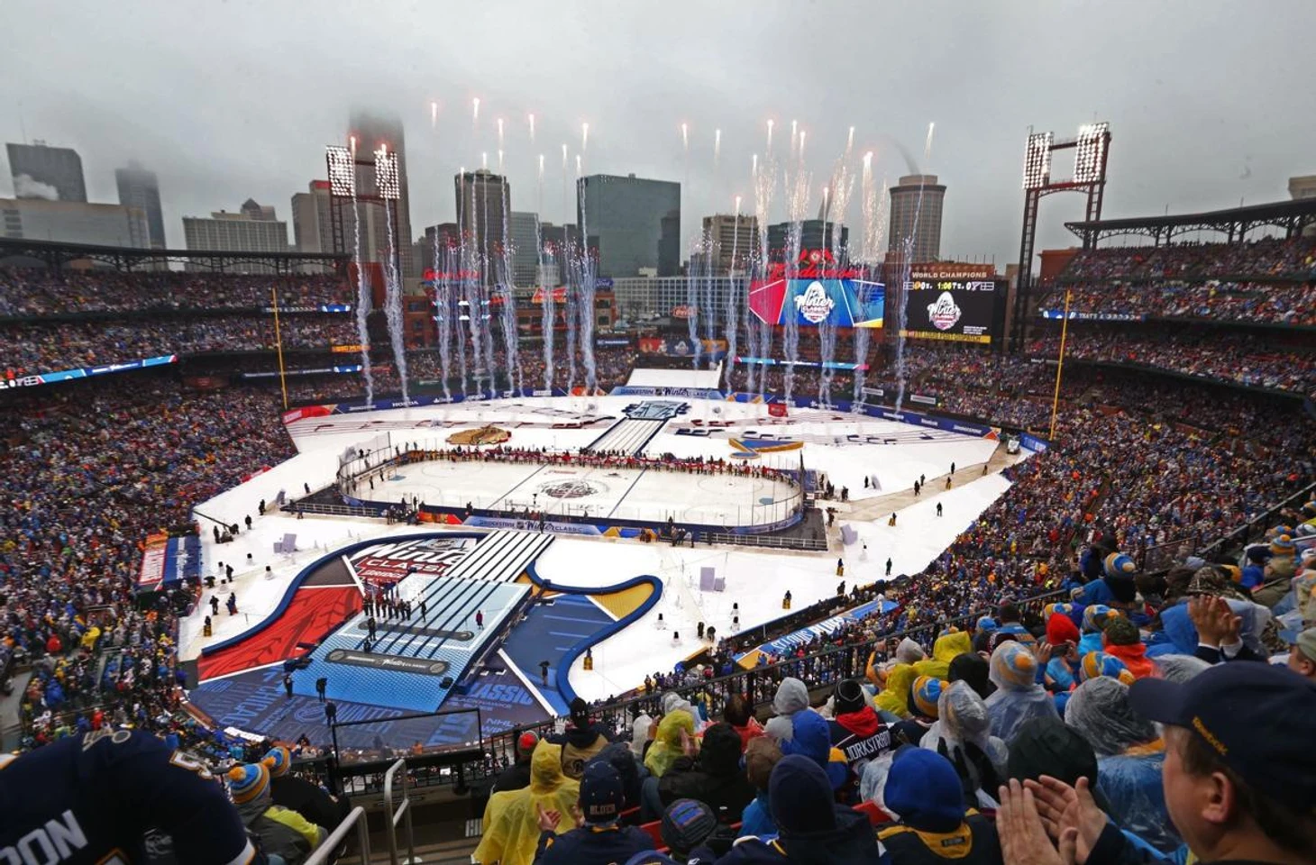 В прохладный туманный день 2-го января 2017 года две команды устроили ледовое шоу с аншлагом в 46 556 человек - это самая большая хоккейная аудитория в истории Сент-Луиса. На временно установленном катке посреди бейсбольного “Буш”-стэдиума прошла ежегодная Зимняя Классика НХЛ, в ходе которой “Блюз” обыграли “Чикаго” со счетом 4-1. Во время первого периода шел небольшой дождь, но он вскоре прекратился и возобновился только через 30 минут после окончания игры.