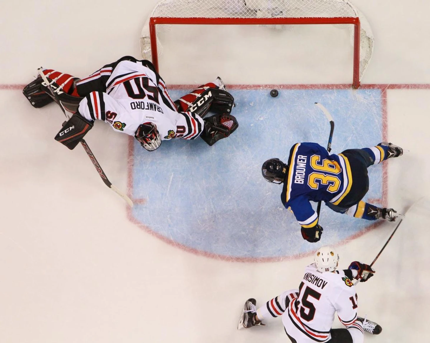 В третьем периоде при ничейном счете 2-2 Робби Фаббри сдалал пас на Троя Броуэра, который сначала послал шайбу в штангу. Она отскочила к нему обратно, форвард промахнулся мимо нее, а затем, уже падая, в итоге переправил ее в ворота, и “Блюз” выиграли тот матч со счетом 3-2, а с ним и всю серию. Далее во втором раунде они в 7 играх обыграли “Даллас” и впервые с 2001 года вышли в финал Западной конференции. Там они проиграли “Сан-Хосе”, но темные тучи, нависшие над ними, казалось, наконец рассеивались.