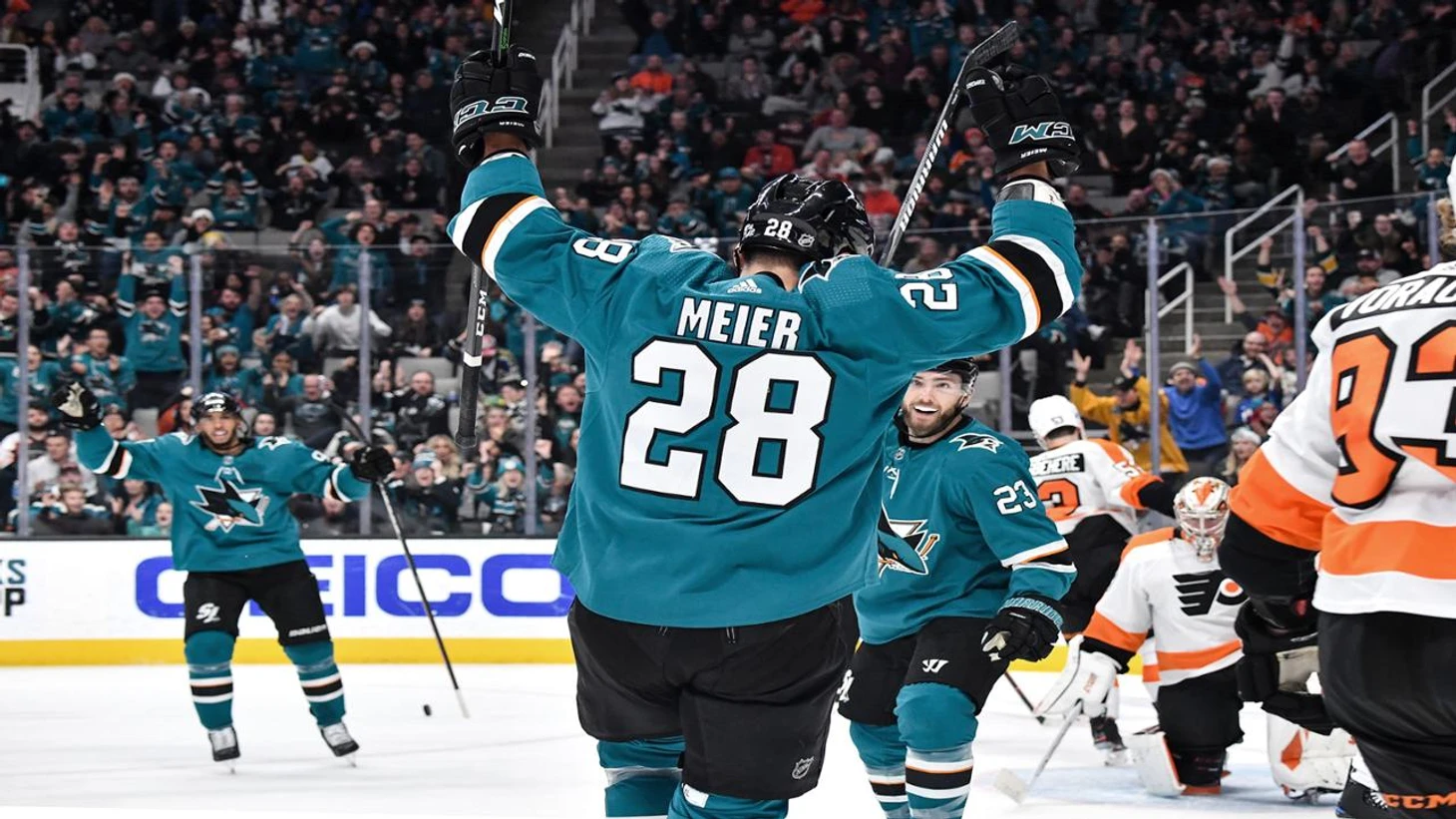 "Сан-Хосе Шаркс"-"Филадельфия Флайерс" 6:1.Тимо Майер забросил 3 шайбы,Баркли Гудроу отдал 3 результативные передачи,Марио Ферраро набрал 2 очка (1+1),Эвандер Кейн отдал 2 результативные передачи,Мартин Джонс отразил 26 бросков.У гостей Иван Проворов забросил единственную шайбу."Акулы" прервали серию из 4 поражений подряд.