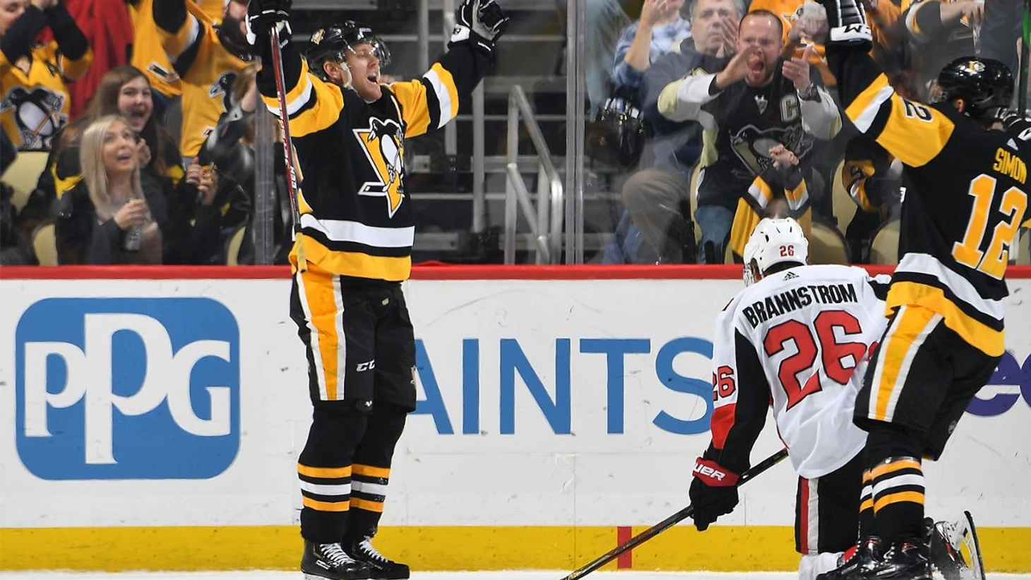 "Питтсбург Пингвинз"-"Оттава Сенаторз" 5:2.Евгений Малкин набрал 3 очка (2+1),Джейк Гюнтцель также набрал 3 очка (1+2),Патрик Хорнквист набрал 2 очка (1+1),Брайан Раст отдал 2 результативные передачи,Тристан Джарри отразил 24 броска.У гостей Николас Пол забросил 2 шайбы.В конце матча Брайан Раст и Марк Боровицки получили по 10 минут штрафа."Пингвины" выиграли 3 матч подряд.