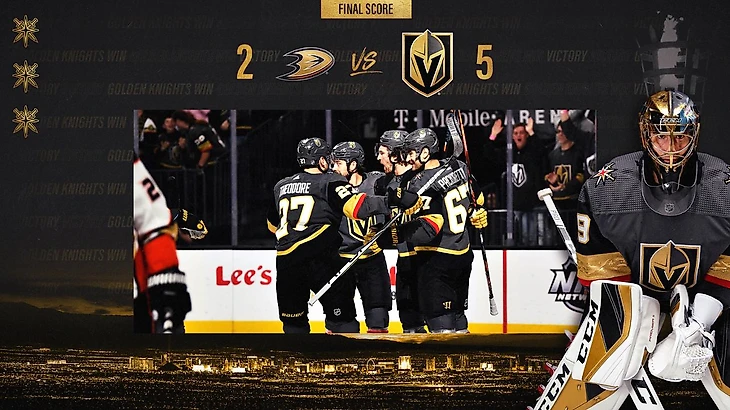 "Вегас Голден Найтс"-"Анахайм Дакс" 5:2.Джонатан Маршессо забросил 2 шайбы,Райлли Смит набрал 2 очка (1+1),Марк-Андре Флери отразил 26 бросков.В 3 периоде Ши Тедор подрался с Максимом Комтуа.