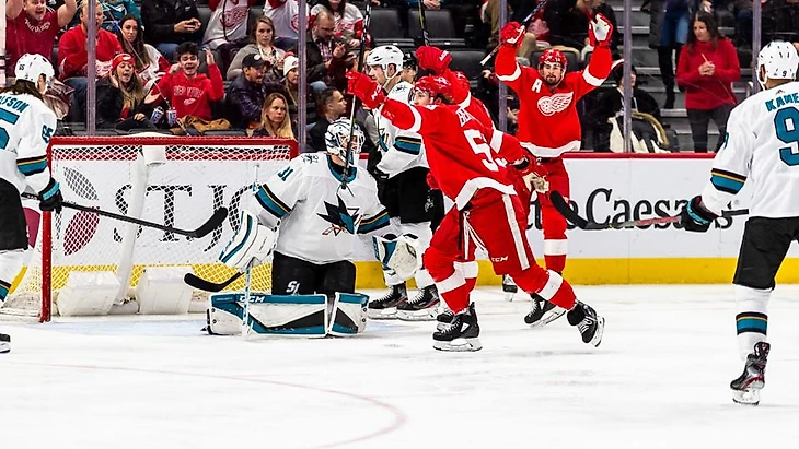 "Детройт Ред Уингз"-"Сан-Хосе Шаркс" 2:0.Тайлер Бертуцци и Филип Хронек забросили по шайбе,Джонатан Бернье отразил 34 броска и сыграл первый сухой матч в сезоне.В 3 периоде Джастин Абделькадер подрался с Баркли Гудроу."Красные крылья" прервали серию из 6 поражений подряд.