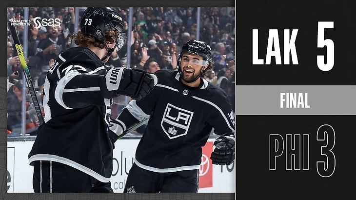 "Лос-Анджелес Кингз"-"Филадельфия Флайерс" 5:3.Адриан Кемпе набрал 2 очка (1+1),Анже Копитар отдал 2 результативные передачи,Николай Прохоркин отдал результативную передачу,Джонатан Куик отразил 32 броска.У гостей Джастин Браун набрал 2 очка (1+1),Якуб Ворачек отдал 2 результативные передачи,Михаил Воробьёв отдал результативную передачу.