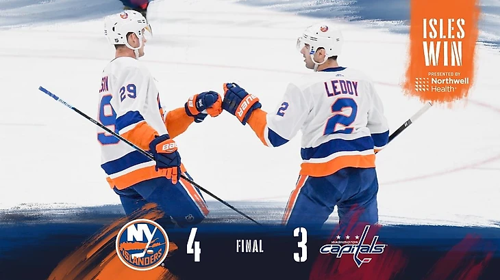 "Вашингтон Кэпиталз"-"Нью-Йорк Айлендерс" 3:4.Том Кунхакль в середине 2 периода забросил победную шайбу.Кейси Сизикас забросил 2 шайбы,Семён Варламов отразил 36 бросков.У хозяев Евгений Кузнецов забросил 2 шайбы,Александр Овечкин и Дмитрий Орлов отдали по результативной передаче.