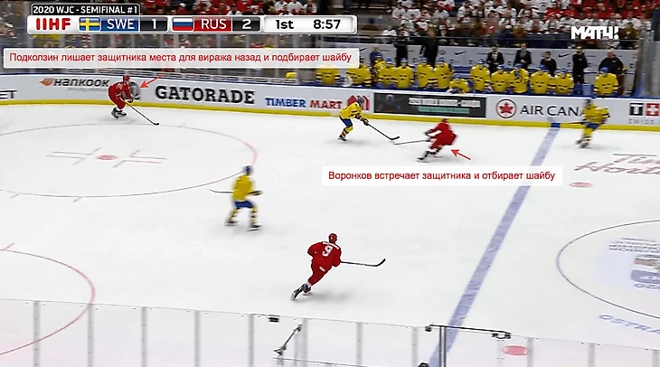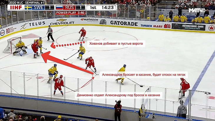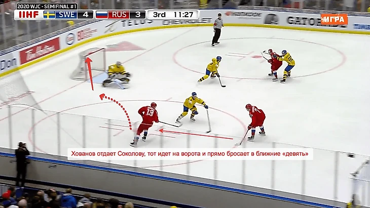 Этой пулеметной очередью – как и в матче с Канадой, кстати – убили целую серию зайцев. Лишили шведов огромного количества позиционных атак, отобрали у них минут 7-10 владения шайбой и заставили впахивать в своей зоне. Это давление не привело к голу напрямую, но оно дало сигнал сопернику, что матч идет не по его плану – в итоге занервничали все, в том числе и вратарь Альнефельт, который сорвался помогать защите и привез третью шайбу в свои ворота.