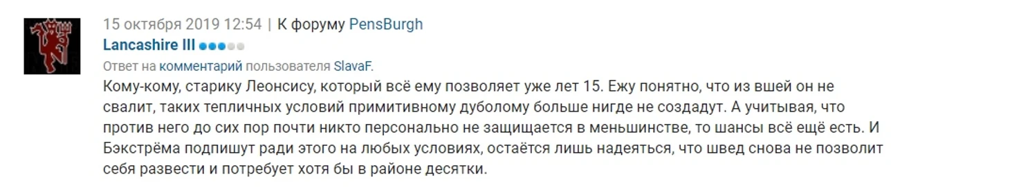 Ванкувер который здесь упомянут раньше был намного скромнее если он и считал Овечкина узкопрофильным, но при этом молчал, то щас его можно найти всё чаще в темах про Овечкина. К тому же он явно более агрессивен. Пусть он и говорит что типо травит секту Овечкина якобы те припупели, но на самом деле это всего лишь отговорки.