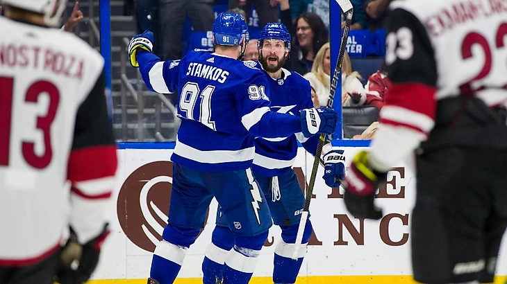 "Тампа-Бэй Лайтнинг"-"Аризона Койотс" 4:0.Никита Кучеров забросил 2 шайбы,Седрик Пакетт с Патриком Маруном и Стивенос Стэмкосом отдали по 2 результативные передачи,Михаил Сергачёв забросил одну шайбу,Андрей Василевский отразил 25 бросков и сыграл первый сухой матч в сезоне."Молнии" выиграли 9 матч подряд.
