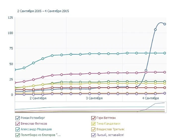 Раз уж мы так внимательно присмотрелись к одному из IP-семейств с 8 аккаунтами, расскажем историю до конца. Мы проанализировали ники и адреса электронных почт, на которые зарегистрированы профили, и нашли одного из самых активных мультиаккаунтеров в пользу Романа Ротенберга.