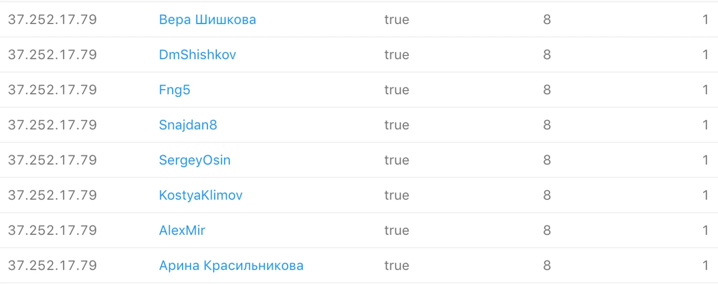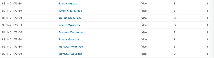 И вот так – 7 страниц ников только по одному комментарию (и это только те аккаунты, что использовали одни IP). Три IP-адреса поставили комментарию 8 плюсов, есть адреса с 5, 4, 3, 2 плюсами.