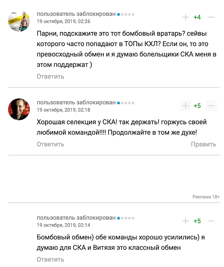 Но сначала нужна трогательная история его появления на сайте. Автор зарегистрировал большинство своих аккаунтов 19 октября – чтобы в комментариях про шумный обмен СКА (Бывальцев и Кочетков в «Витязь» на Самонова и Швец-Рогового) спустя более чем сутки после публикации новости появилось в том числе такое: