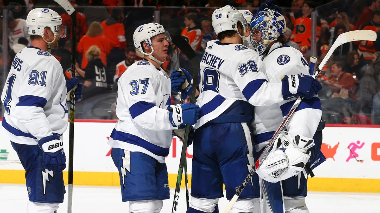 "Филадельфия Флайерс"-"Тампа-Бэй Лайтнинг" 0:1.Патрик Марун в середине 2 периода забросил единственную шайбу,Андрей Василевский отразил 23 броска и сыграл 20 сухой матч в карьере."Молнии" выиграли 10 матч подряд.