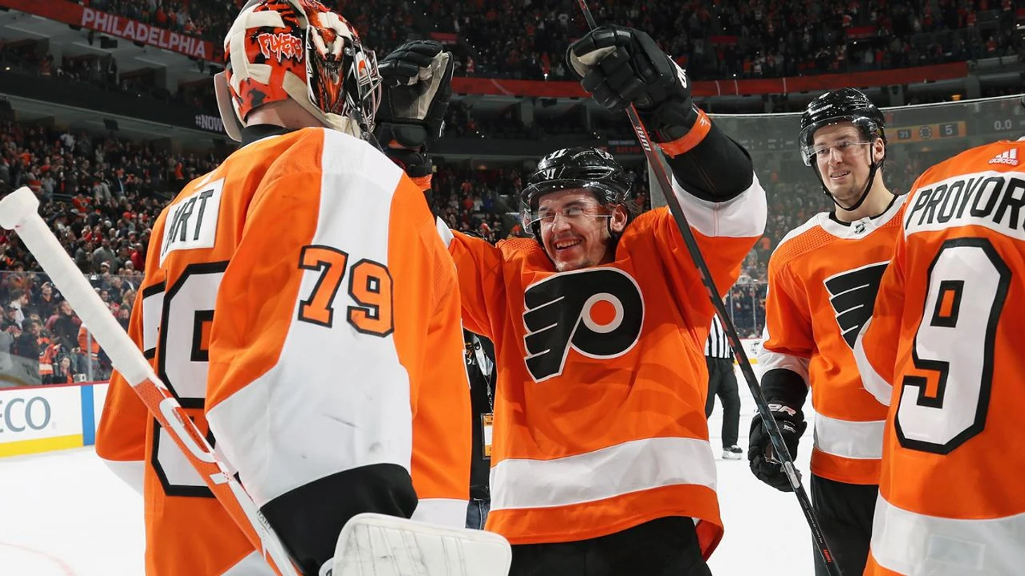 "Филадельфия Флайерс"-"Бостон Брюинз" 6:5 (Бул).Трэвис Конечны в серии буллитов принёс победу хозяевам.Шон Кутюрье набрал 3 очка (1+2),Трэвис Занхайм забросил 2 шайбы,Якуб Ворачек отдал 2 результативные передачи,Картер Харт отразил 26 бросков.У гостей Давид Крейчи забросил 2 шайбы,Андерс Бьёрк и Чарли Койл набрали по 2 очка (1+1),Дантон Хайнен и Джейк ДеБрюск отдали по 2 результативные передачи,Ярослав Халак отразил 34 броска.