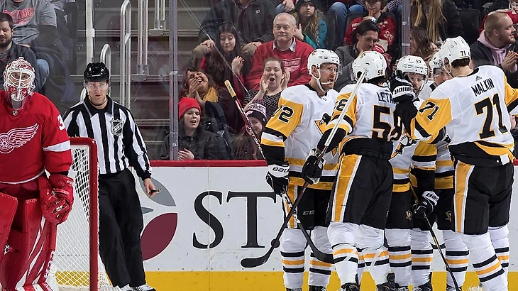 "Детройт Ред Уингз"-Питтсбург Пингвинз" 1:2 (ОТ).Сидни Кросби в овертайме принёс победу гостям.Брайан Раст набрал 2 очка (1+1),Евгений Малкин отдал 2 результативные передачи,Мэттью Мюррей отразил 28 бросков.