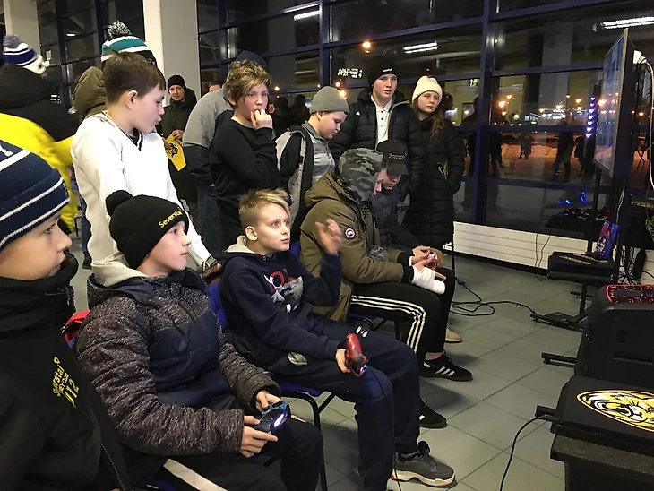 Зона PlayStatiion с виртуальным хоккеем занимает отдельное место в сердечке череповецкого болельщика. После каждого перерыва прошедшего матча ( а он, как мы уже знаем, оказался не очень удачным для «Северстали») количество желающих забить в виртуальные ворота соперника только возрастало, причем с геометрической прогрессией.