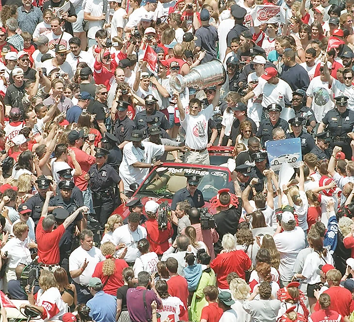 Тот плей-офф «Детройт» начал с шокирующих 0-2 на домашней арене против «Ванкувера». Ретроспективно «Кэнакс» тех времен почему-то считаются полными ноунеймами, но на самом деле это была лучшая атака того сезона (забили на три гола больше «Ред Уингс»), а на скамейке стоял старый недобрый Марк Кроуфорд, прекрасно знакомый большинству игроков «Детройта» (он тренировал чемпионский «Колорадо» в 1996-м).
