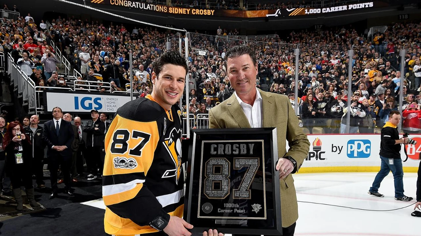 Недалеко от Овечкина как бы вы думали кто? Конечно же Сидни Кросби. Про него мы недавно сделали большой выпуск: посмотрите его здесь, он вам точно понравится. Малыш Сид добрался до своей отметки через месяц после Овечкина, 16 февраля 2017. Однако он не забросил, а ассистировал своему партнёру Крису Кунитцу в игре против «Виннипега». Кстати, Кросби потребовалось на выбивание тысячи на 124 матча меньше, чем Овечкину.