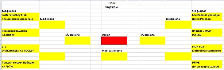 На основании реальной сетки Кубка Гагарина, сетка нашего турнира будет выглядеть так: