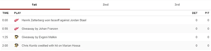 Итак, финальная серия 2009 Детройт - Питтсбург. Три игры прошли в Питтсбурге (3-я, 4-я и 6-я). Вбрасывания в начале периодов. Итого 9 шт. Бэбкок 7 раз выпускал Зетту, в ответ Байлсма все 7 раз ставил на точку одного и того же игрока. Вы, конечно, полагаете, что это был Сидней Кросби? А вот хрен вы угадали! Все 7 раз на точку выходил Джордан Стаал.