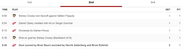 Вот примерно так Кросби «держал» Зеттерберга в финальной серии КС в 2009 г. В выездных играх (@) у Кросби 0 очков.