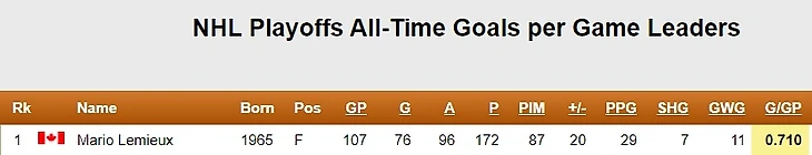 Главными рекордами Лемье вероятнее являются 13 шайб в меньшинстве за сезон и и GPG 0.749 в плей-офф.