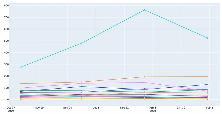 - у всех без особого роста, у китайской команды подписчиков меньше 1000 и это во многом объясняет их показатели вовлеченности.