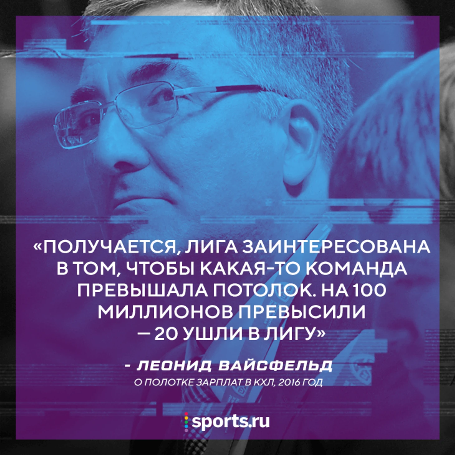 Все это давало повод Леониду Вайсфельду негодовать: «У нас везде объявляют, что потолок зарплат составляет 950 миллионов. А на самом деле можно превышать его на сколько хочешь – только плати в лигу штраф 20 процентов от превышения. И, получается, лига заинтересована в том, чтобы какая-то команда превышала потолок. На 100 миллионов превысили – 20 ушли в лигу».