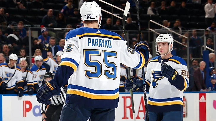"Нью-Йорк Рейнджерс"-"Сент-Луис Блюз" 1:3.Брейден Шенн с Джейдном Швартцем и Колтоном Парайко набрали по 2 очка (1+1),Джордан Биннингтон оразил 25 бросков.У хозяев Павел Бучневич отдал результативную передачу."Блюзмены" выиграли 8 матч подряд.
